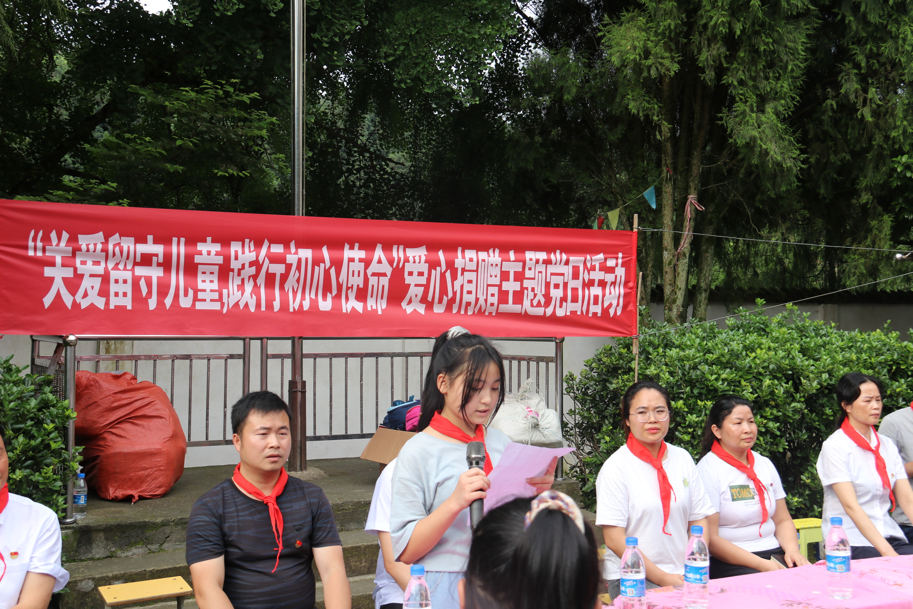 捐赠活动上,首先由黎平县坝寨乡蝉寨小学少先队员代表为主席台上的领导和嘉宾敬献并佩戴红领巾。