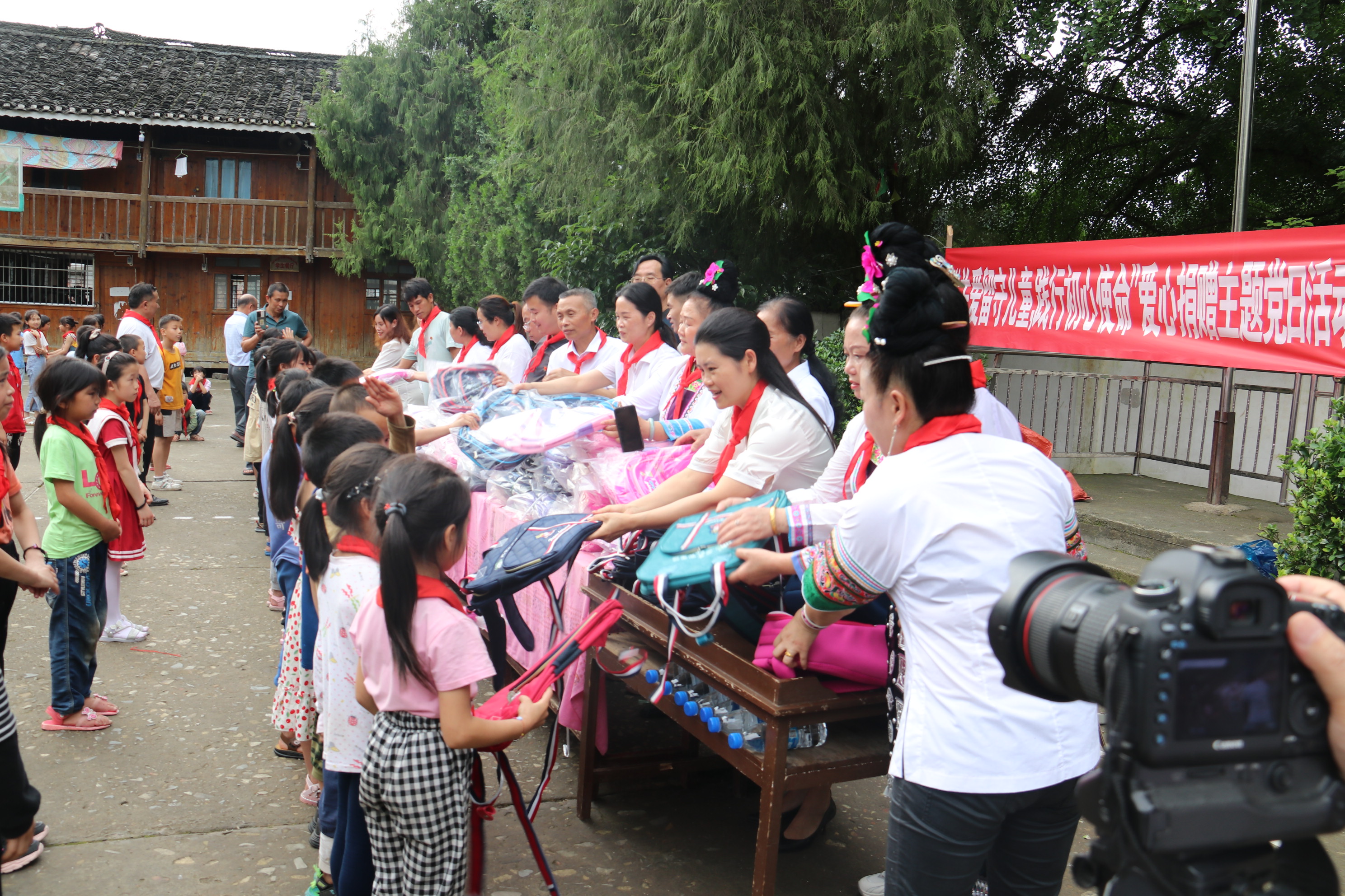 在党的生日“七一”即将来临之际,2022年6月21日下午,黎平县侗族大歌学校党支部、黎平县红色文化旅行社党支部、黎平县诚德医院党支部、贵州恒丰建筑工程有限责任公司党支部、贵州通建建设工程有限公司党支部到黎平县坝寨乡蝉寨小学开展“关爱留守儿童·践行初心使命”爱心捐赠主题党日活动。本次捐赠活动,共向黎平县坝寨乡蝉寨小学捐赠130个书包。